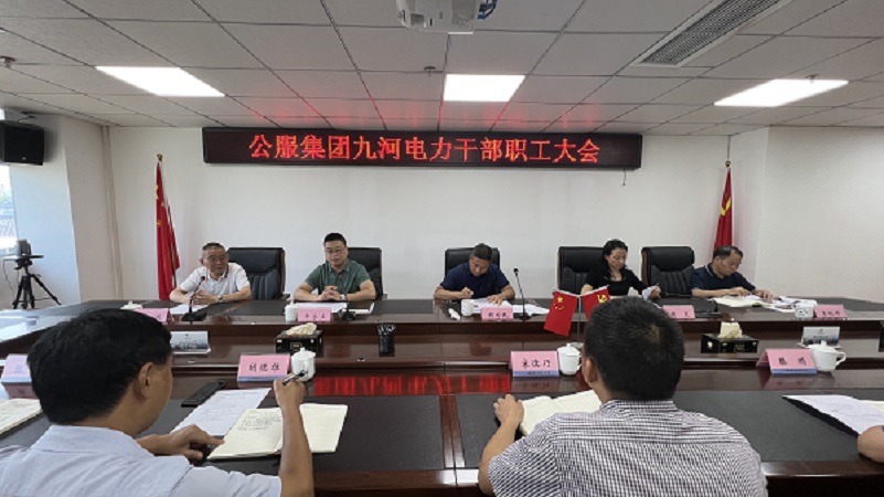 7月5日,公司召开干部职工大会。公服集团公司副总经理胡为民同志,党委委员、副总经理黄灵同志出席会议。会议由九河电力公司党委书记、董事长牟永立同志主持,九河电力在宜班子成员、中层及以上管理人员参加会议。