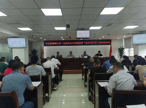 按照国家、省、市和公服集团公司的相关要求202361下午,四川九河电力股份有限公司在公司五楼516会议室组织开展2023年全国22个“安全生产月”活动启动仪式。活动主题为“人人讲安全 个个会应急”,会议以主会场加视频会议形式进行。