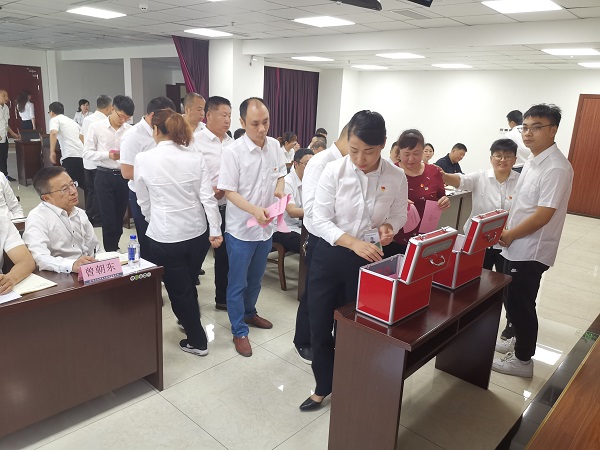 大会在庄严的国歌中拉开了序幕。公司党委副书记、王维宣读了市国资委党委《关于同意调整四川九河电力股份有限公司党组织设置的批复》《关于同意召开中共四川九河电力股份有限公司委员会第一次党员大会的通知》《关于中共四川九河电力股份有限公司第一届委员会委员和纪律检查委员会委员候选人预备人选的批复》;大会听取并审议了公司党委书记、董事长陈飞所作的中共四川九河电力股份有限公司总支部委员会《2015年-2019年工作报告》和《2015年-2019年党费管理和收缴情况的报告》;宣布了新一届两委委员候选人预备人选基本情况;全体参会党员充分行使民主权利,以举手表决方式通过了大会选举办法、大会选举监票人及计票人人选,以无记名投票、差额选举方式投票选举产生了以陈飞、王维、曾朝东、肖军、宋德行五位同志组成的公司第一届党委委员会,以曾朝东、彭霞、许小琴三位同志组成的公司第一届纪委委员会。