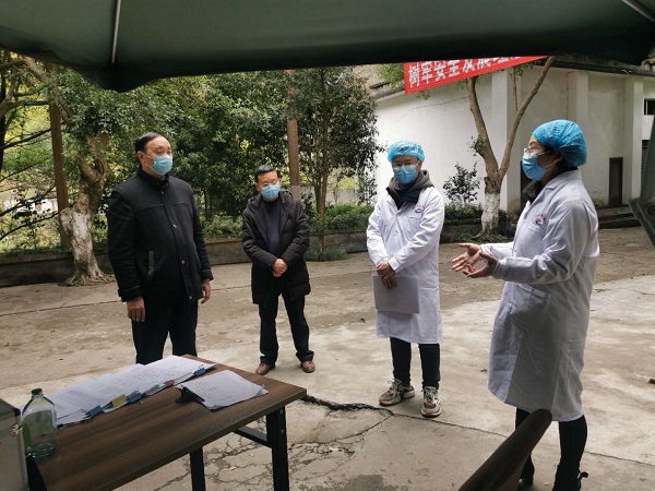3月10日,市、县疾控中心督导组在夏溪乡副乡长温旭梅陪同下到欧家村电站检查疫情防控工作情况。