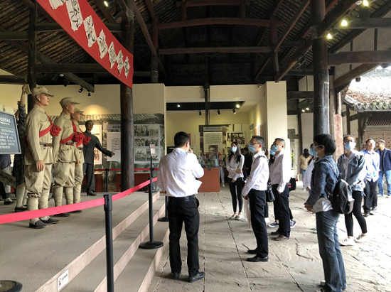深度探访李庄,拜谒先贤群英。把红色教育作为助推党史学习教育全面升温的引擎,实地参观了李庄抗战文化遗址,集体重温抗战时期文献资料、场景再现,深入学习了傅斯年、李济等爱国学者与同济大学学子在李庄艰苦环境中,专研学术、传授学识、保护文物的文化抗战历史,感受抗战风云中的民族精神和铮铮铁骨。
