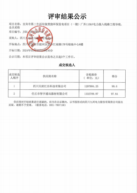 四川九河电力股份有限公司合作供应商(第二批)征集入库项目招选公告