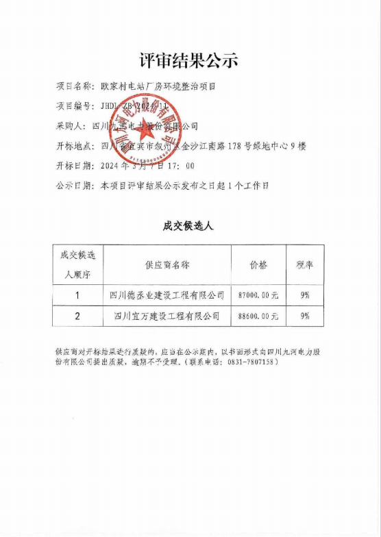 四川九河电力股份有限公司合作供应商(第二批)征集入库项目招选公告