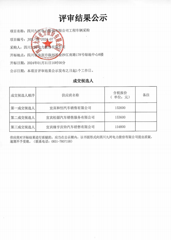 四川九河电力股份有限公司合作供应商(第二批)征集入库项目招选公告