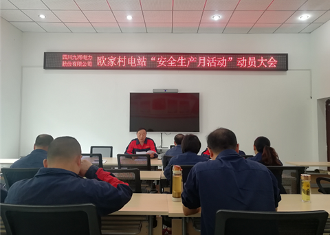 6月4日,欧家村电站“安全生产月”活动动员大会在欧家村电站会议室召开,会议由公司安全生产领导小组成员、欧家村电站站长冯志华主持。电站生产办、综合办和运维班全体人员参加了动员大会。会上,站长冯志华领学了《关于2020年全省“安全生产月”和“安全生产天府行”活动的通知》(川安办〔2020〕33号)、《关于开展2020年宜宾市“安全生产月”活动的通知》(宜安办〔2020〕50号)和《关于印发“消除事故隐...